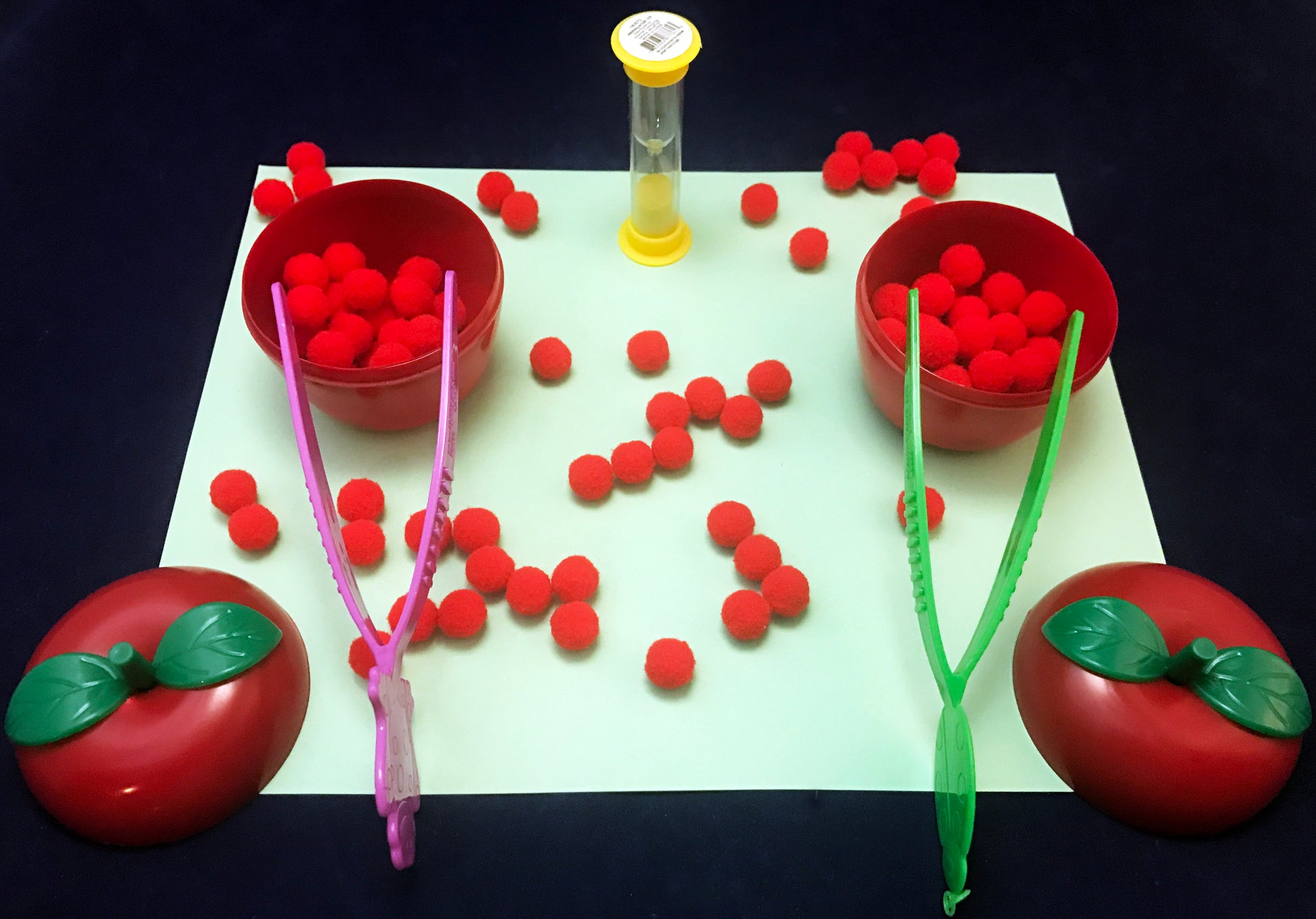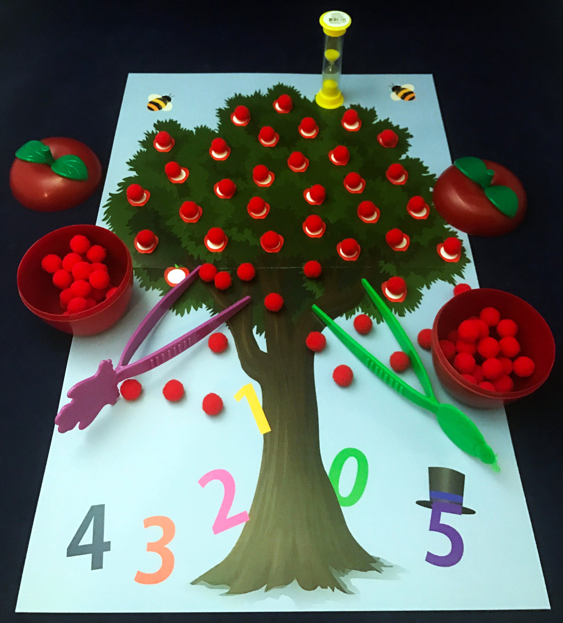 • Apple Picking Race: Players flop over a sand timer and race to pick as many apples as they can before the time runs out.