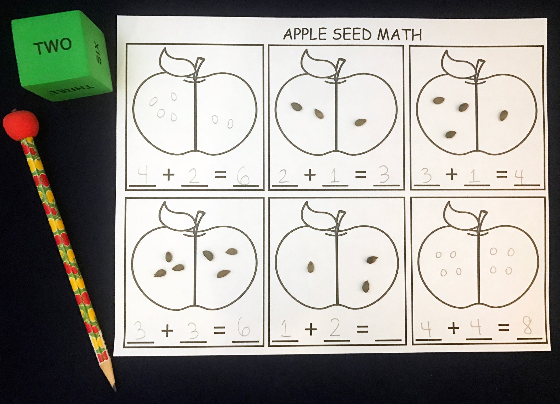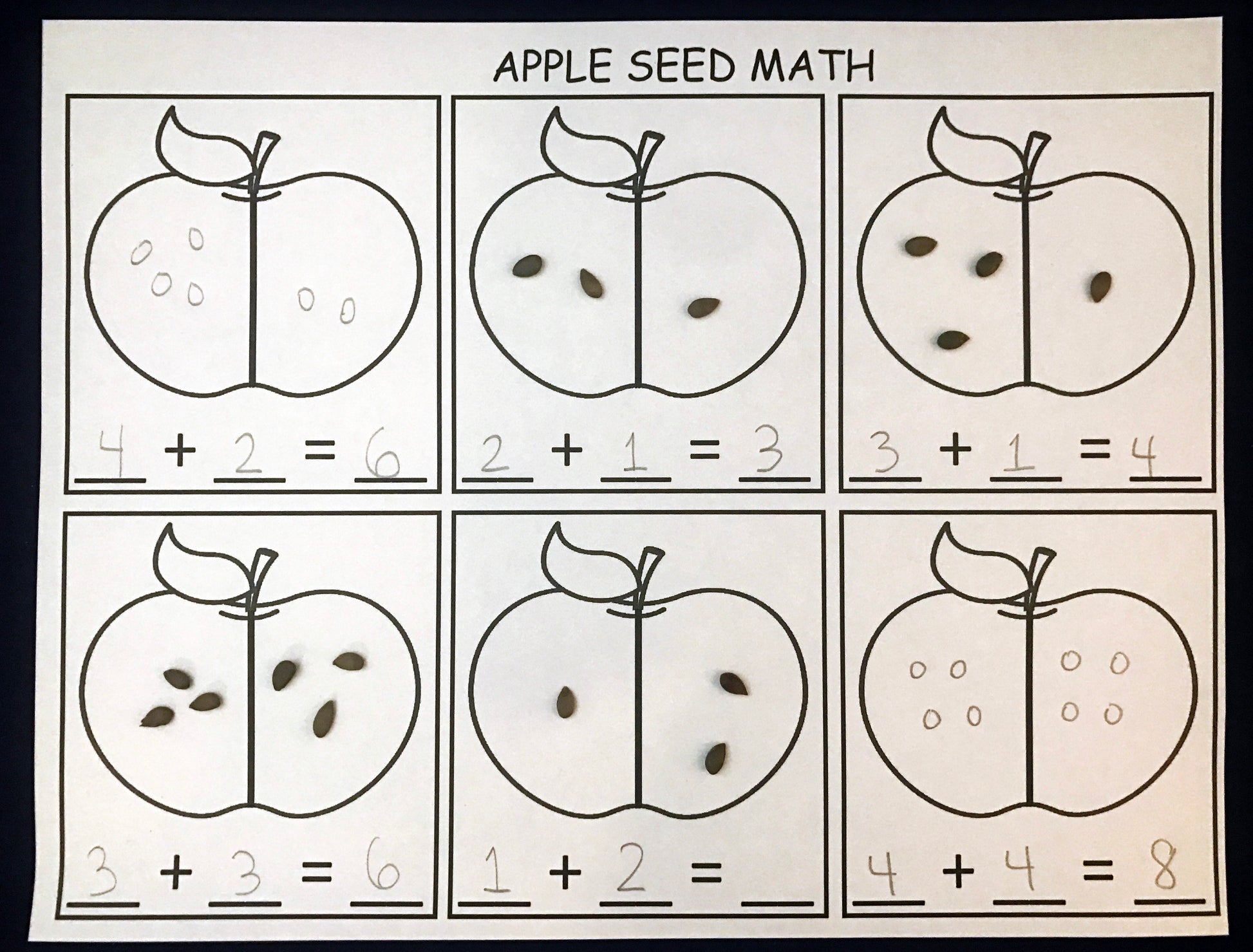 • Apple Seed Math: Solve addition problems using real apple seeds.