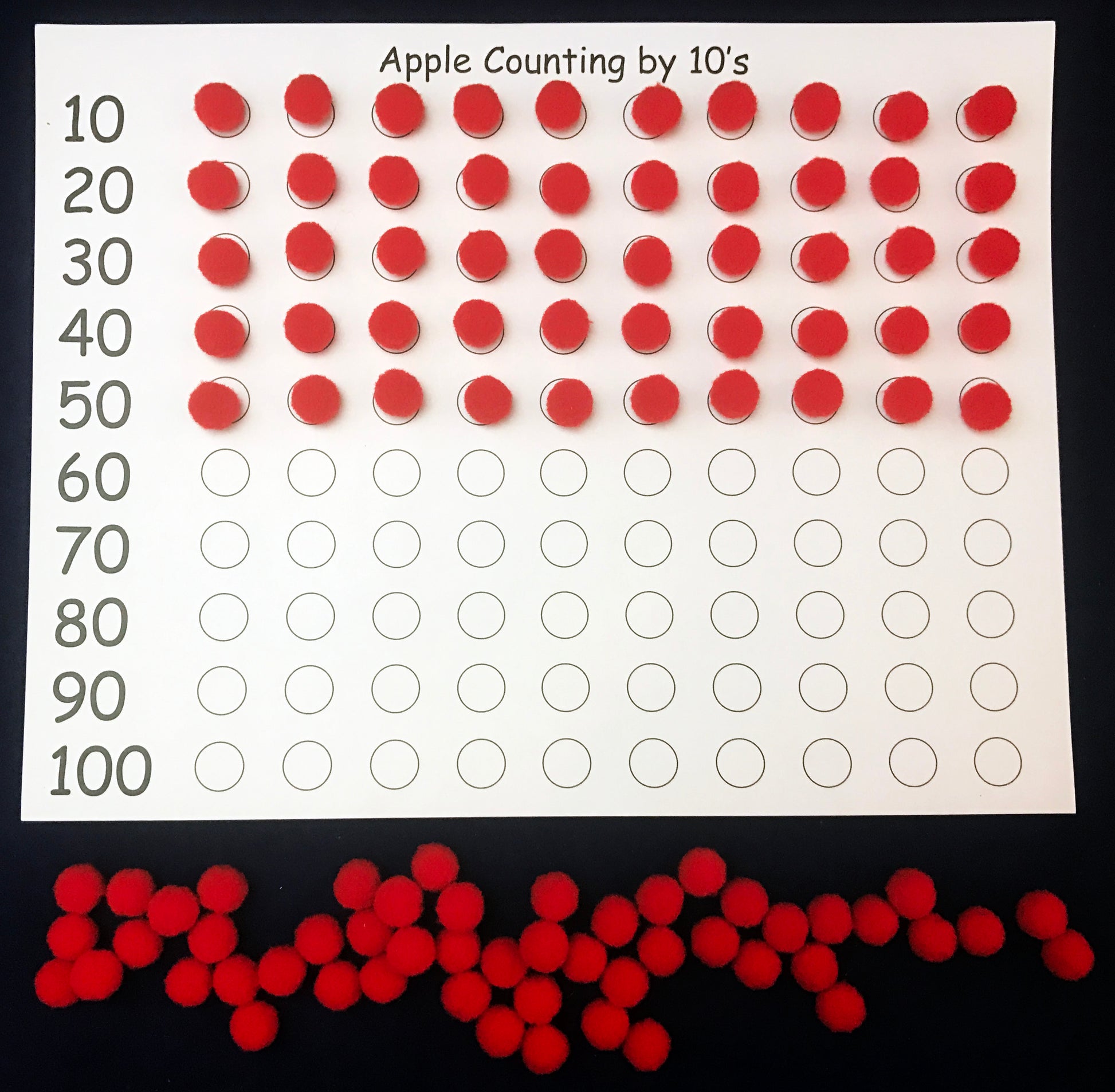 • Counting Apples by 10’s: Use the board to group and count the apples by 10’s.