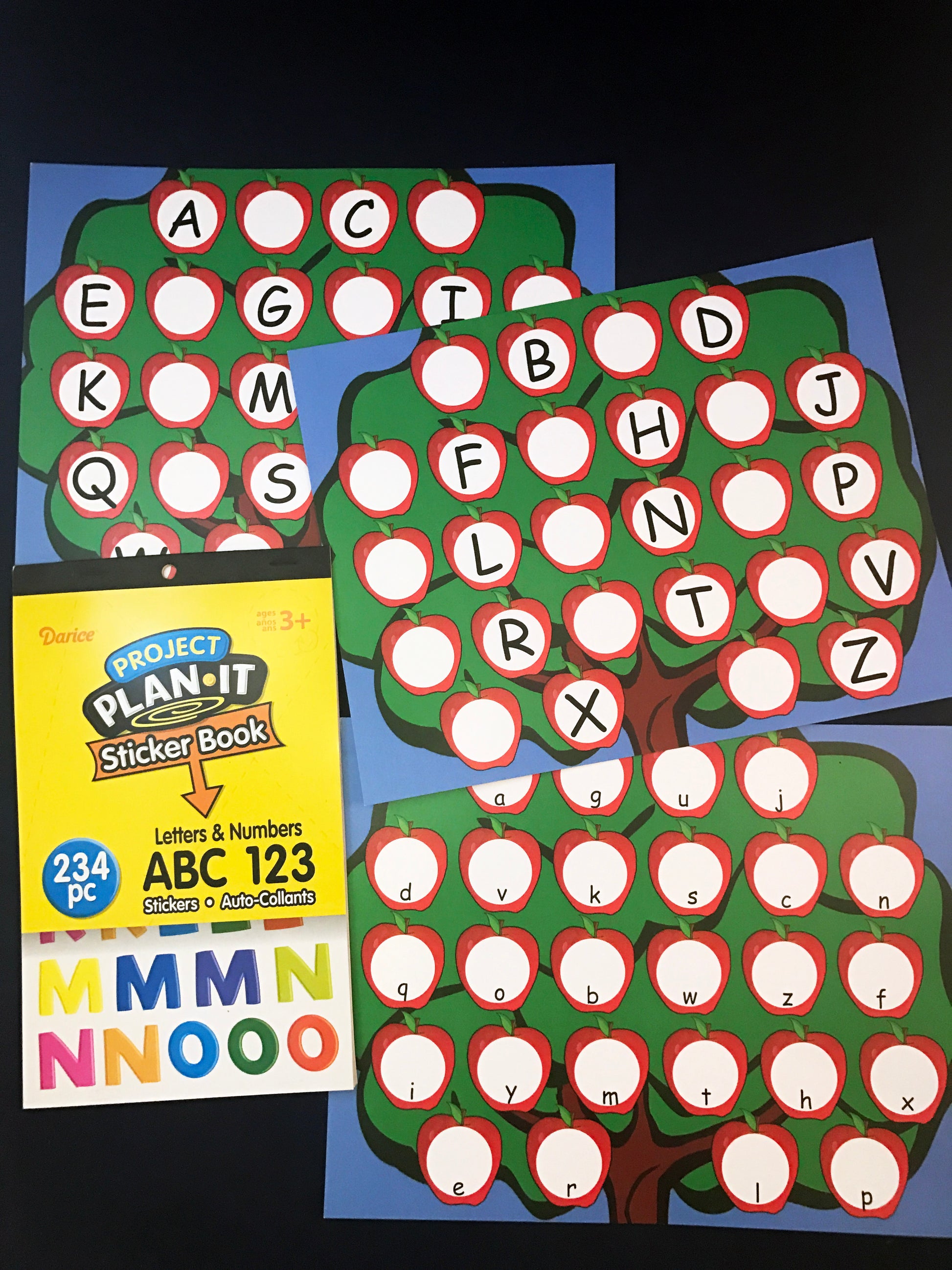 • Apple Alphabet - Missing Letters: Use the stickers to fill in the missing letters on the apple trees.