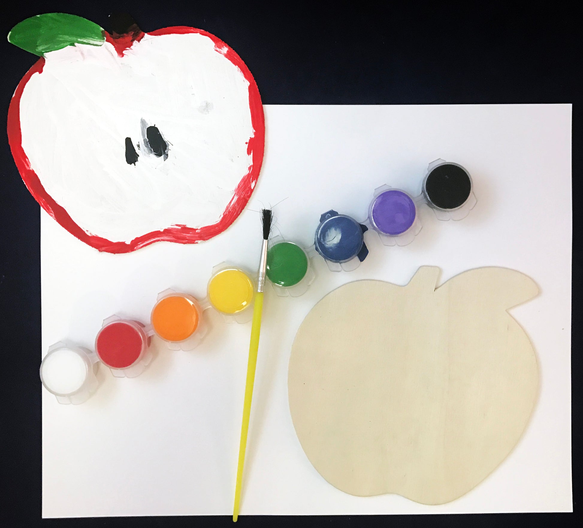 • Wooden Apple Painting: Use the paints to decorate your wooden apple. You may want to paint realistic features on the apple or you may simply enjoy painting an abstract design on the apple.