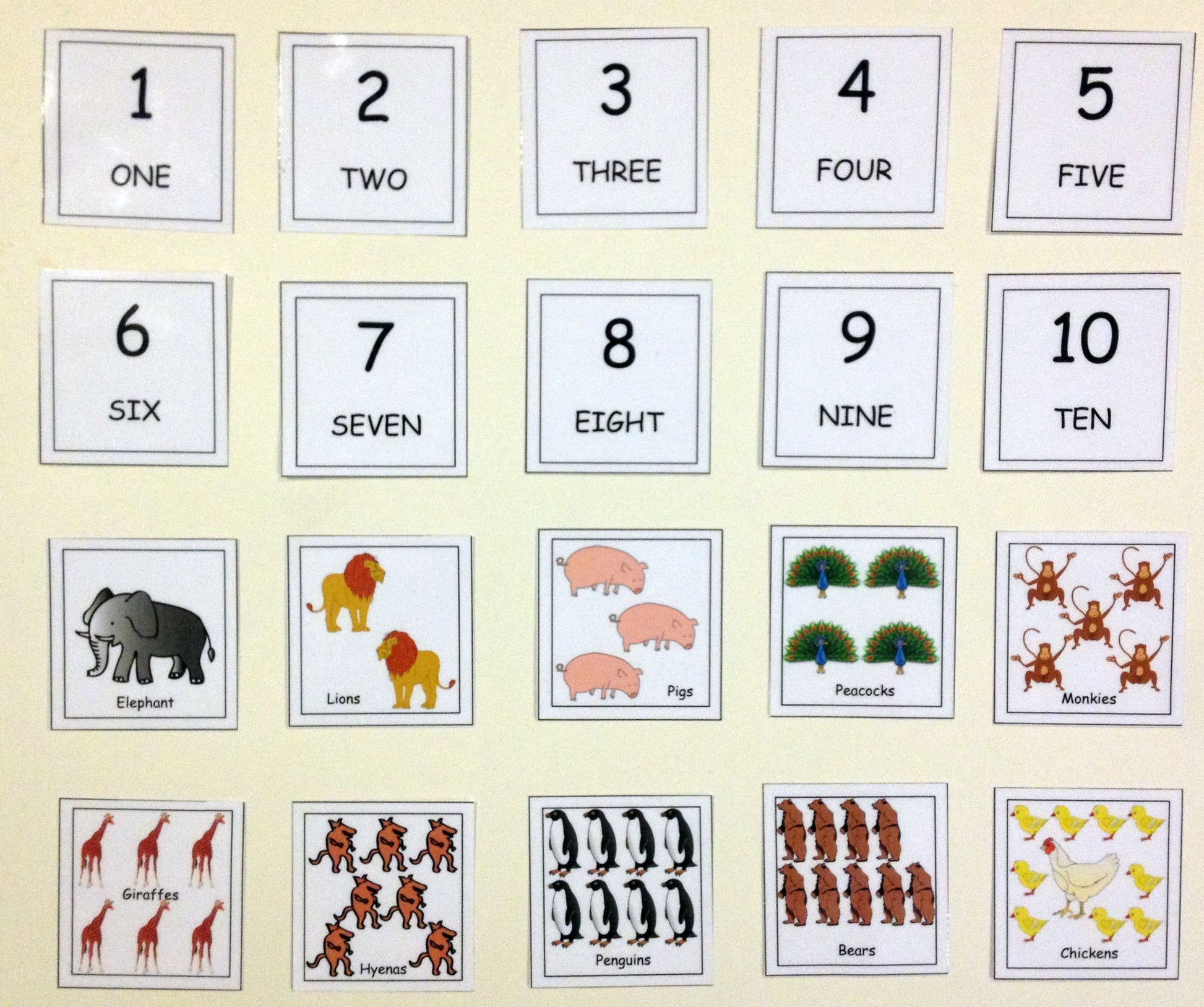 - Memory Game: Take turns flipping over a pair of cards and try to match the number card to the correct number of animals.