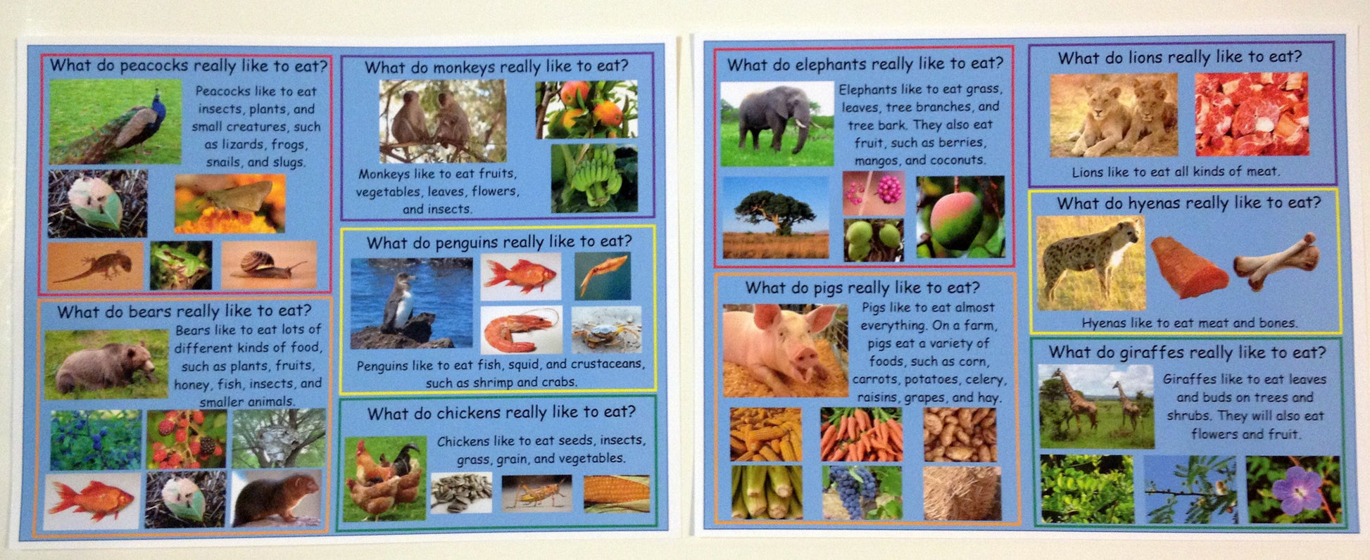 - Animal Food Facts: Use the boards to learn about the real foods animals like to eat.