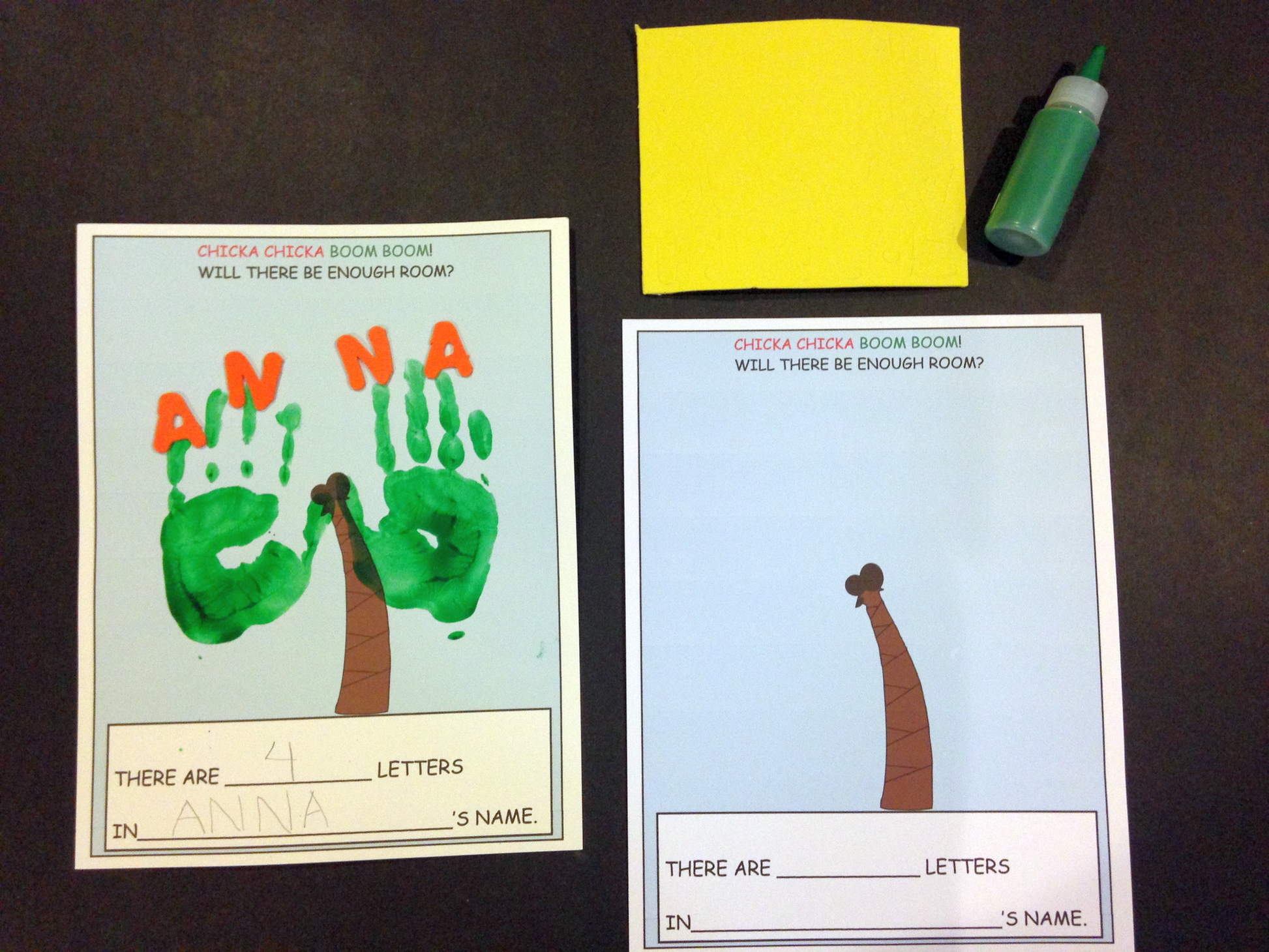 • Chicka Chicka Name Tree: Use the paint to make "leaf" handprints. Then use stickers to make your name in the tree.