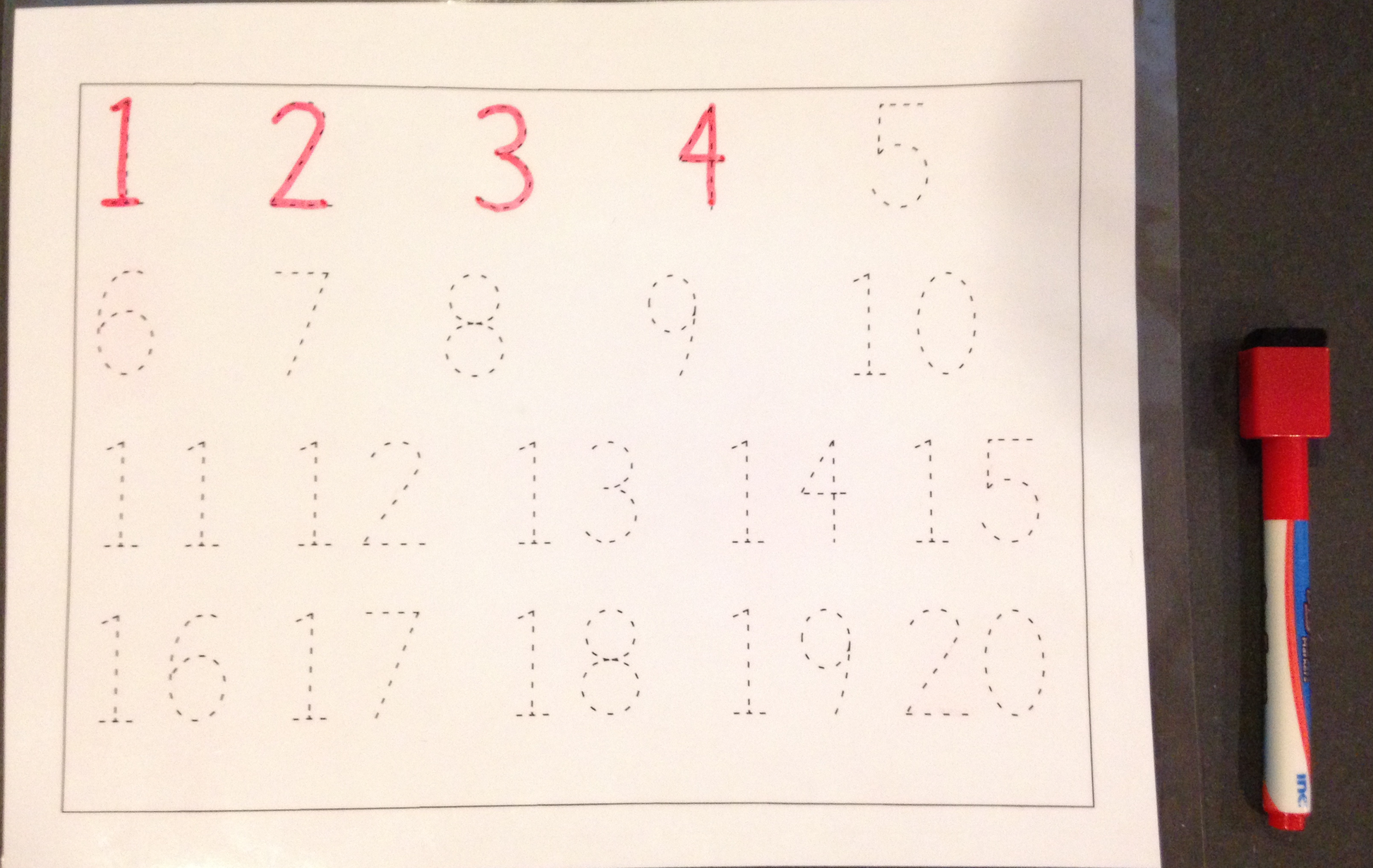 • Tracing Board: Use the dry erase marker to trace all the letters in the alphabet and the numbers 1-20. Then erase and play again.