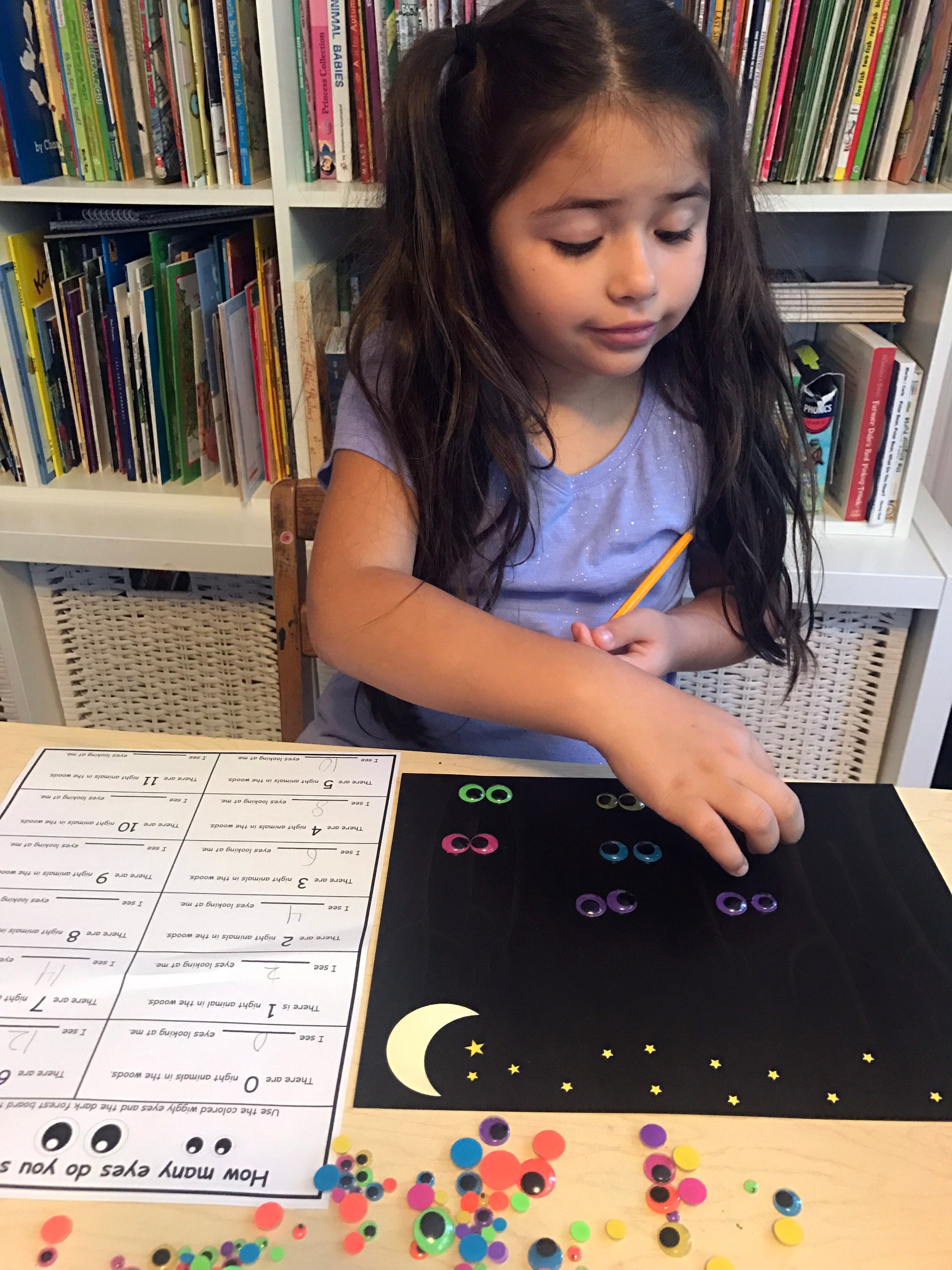 - Animal Eyes in the Dark: How many night animals are in forest? Use the colored wiggly eyes and the dark forest board to help you solve multiplication and division problems.