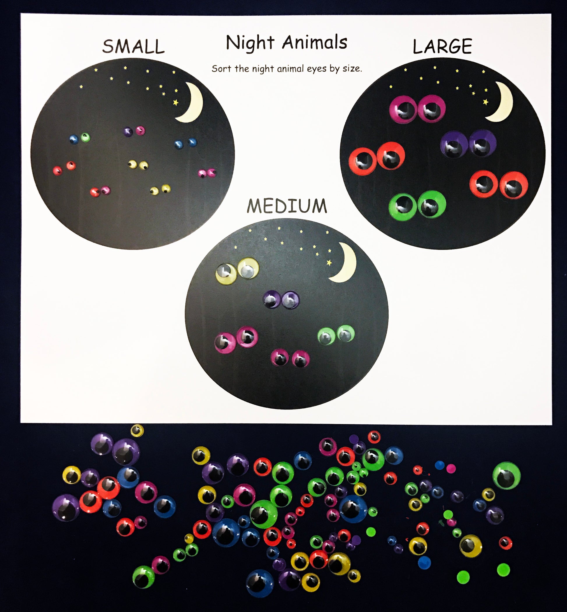 - Sorting Eyes: Sort the night animal eyes by size and/or color.