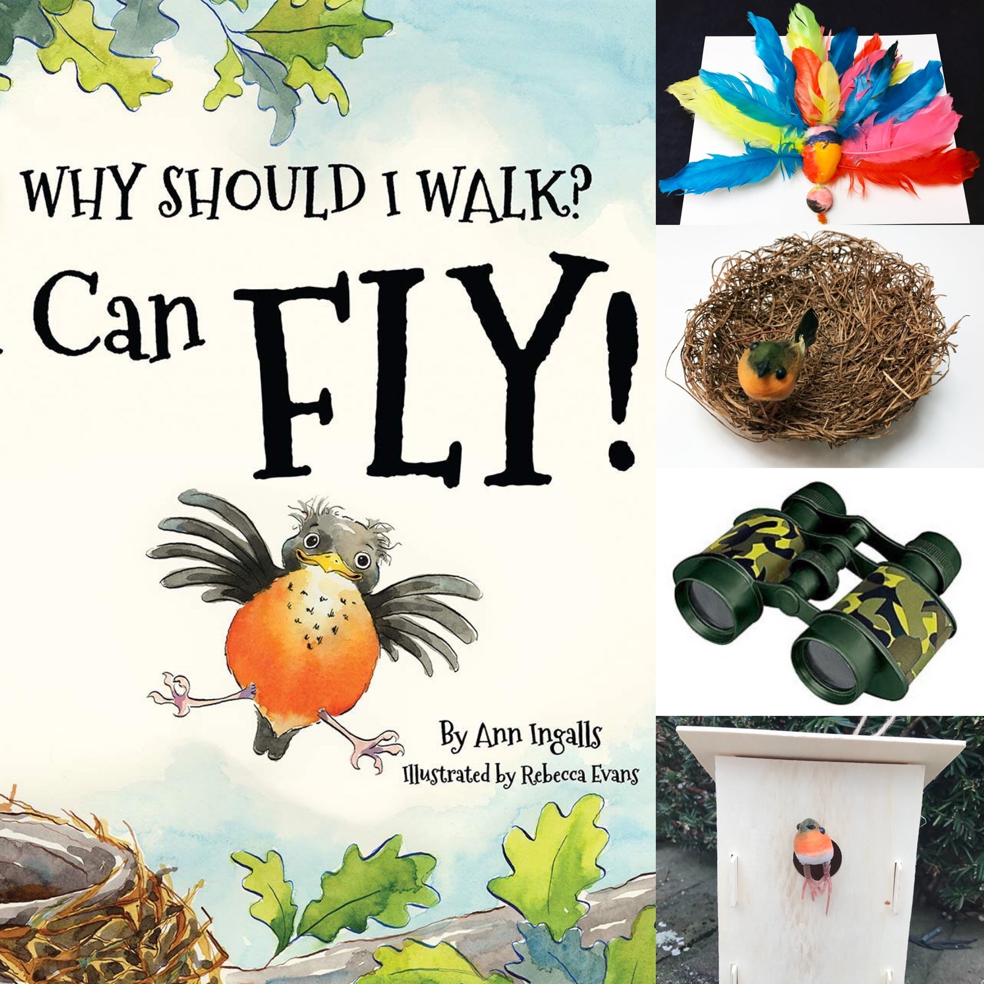 This kit features the award-winning book Why Should I Walk? I Can Fly! by Ann Ingalls. This is a charming story about a young robin trying so hard to learn to fly. Children will enjoy reading about the robin’s persistence in accomplishing its first flight!
